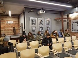 UCZNIOWIE I UCZENNICE CENTRUM EDUKACJI W MUZEUM "IZBA PAMIĘCI KWK "WUJEK" W KATOWICACH