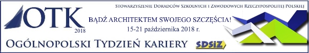W dniach 15-19 października 2018 r. w całej Polsce odbywa się Ogólnopolski Tydzień Kariery (OTK2018). W tym roku tydzień ten poświęcony jest tematowi "Bądź architektem swojego szczęścia.". Maon zwrócić uwagę na źródła i możliwości wsparcia młodzieży i dorosłych w wyborach dróg edukacyjnych i zawodowych.W ramach tego wydarzenia w naszej szkole odbędą się następujące działania: